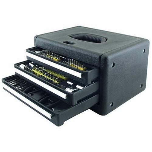 Buying Heat-treated for strength and durability. Includes: 3/8 x 3 extension bar; 3/8 -drive reversible ratchet handle; mini ratchet screwdriver handle; 3/8-drive (F) x 1/4 (M) adapter; 3/8-drive 13/16 spark plug socket; 1/4-drive adapter; 6 precision screwdrivers, sizes 1, 1.4, 1.8, 2.4, #0 x 3, #1 x 3.5; 6 long nose pliers; 6 slip joint pliers; utility knife; 10 utility knife blades; eighteen 1/4-drive hardened carbon steel sockets in 5, 6, 7, 8, 9, 10, 11, 12 and 13mm metric sizes and 3/16, 1/4, 9/32, 5/16, 11/32, 3/8, 7/16, 15/32 and 1/2 standard sizes; 12 3/8-drive 12-pt. carbon sale